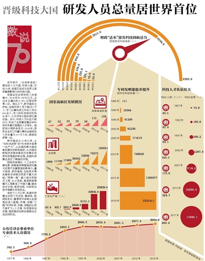 新京报讯 (记者陈维城)曾经的人口大国,科技小国,历经70年,我国已经成为世界上具有重要影响力的科技大国。